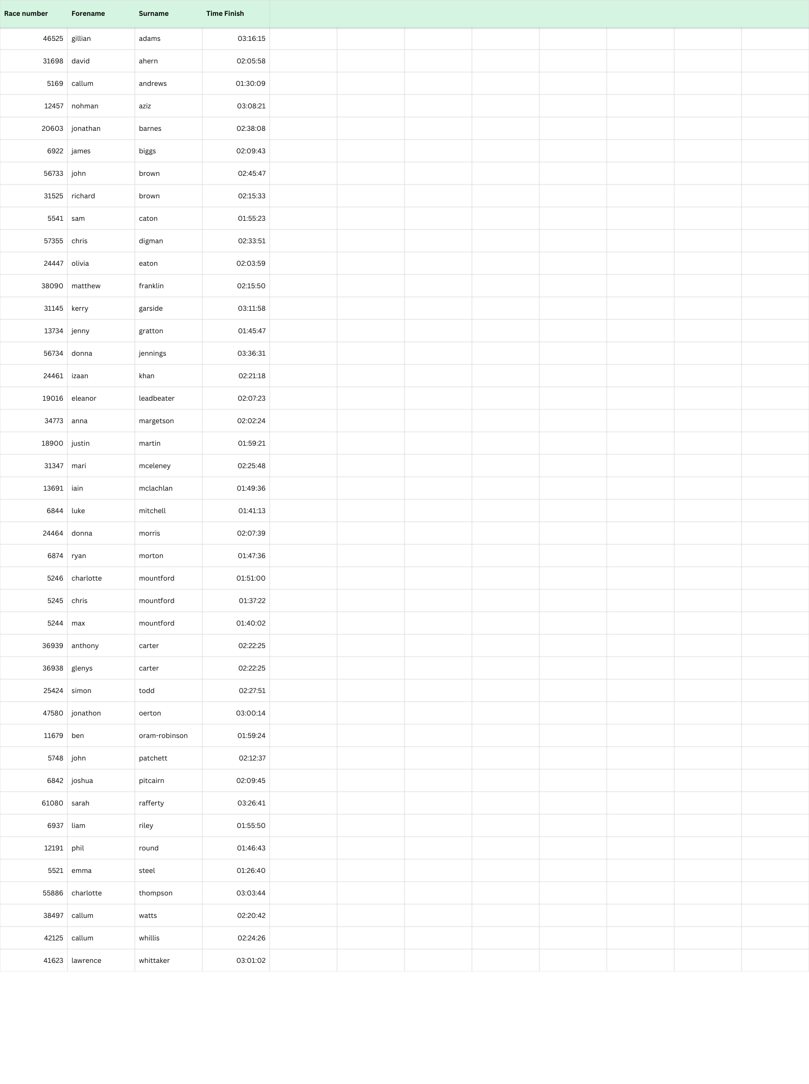 Congratulations to everyone involved! Here are the times and names of all our brilliant runners.